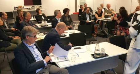 Sabine en Rik doen hun verhaal in een bijeenkomst met collega’s van verschillende teams bij Cello. Ze nemen deel aan een cyclus binnen de VeiligPlus-aanpak. Ze hebben in hun teams dialoogbijeenkomsten gehouden en zijn vandaag bij elkaar om deze te evalueren.