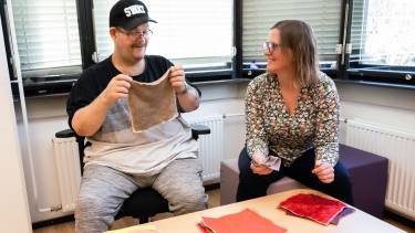Marchel van der Linden voelt aan de lapjes die gemaakt zijn van verschillende materialen. ‘Deze is fijn. Deze niet. Deze zit er tussenin.’ Hij maakt drie stapeltjes. ‘Het is voor jou meteen duidelijk wat wel of niet fijn voelt‘, reageert Maartje van den Berge. Zij is psychomotorisch therapeut. Marchel zelf is in het dagelijks leven dj en ziet er cool uit. We zijn op een behandellocatie van Stevig in Nijmegen. Binnenkort staat hij met zijn mengtafel langs de vierdaagse.